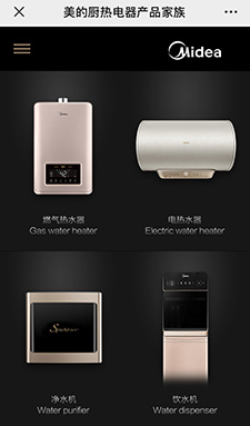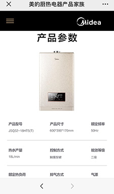 為美的(de)量身打造的(de)微網站:展示產品(pin)圖片、產品(pin)介紹、界面美觀(guan),可分享朋友圈(quan)。
