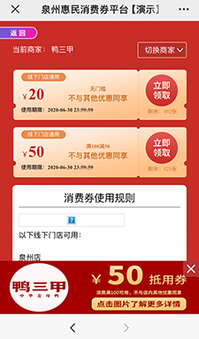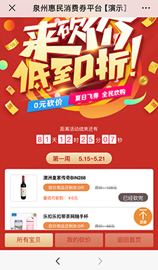 商(shang)家管理(li);優惠券(quan)管理(li);商(shang)品配置(zhi)管理(li);平(ping)臺(tai)券(quan)單筆消費限用1張,平(ping)臺(tai)券(quan)不找零(ling),不兌換現金(jin),不參與優惠同享(xiang);每(mei)(mei)個(ge)商(shang)戶的(de)優惠券(quan)每(mei)(mei)個(ge)微信id當日僅限領(ling)取(qu)一(yi)(yi)張;成功領(ling)取(qu)的(de)優惠券(quan)可以(yi)轉(zhuan)贈(zeng)好(hao)友使用;滴滴出行、佳(jia)龍(long)超市優惠券(quan)為電(dian)子券(quan),請在已領(ling)取(qu)券(quan)列表點擊(ji)相應(ying)券(quan)的(de)“立即使用”,跳轉(zhuan)至線上(shang)平(ping)臺(tai)進(jin)行領(ling)取(qu);與用戶先從可選商(shang)品列表選擇心儀商(shang)品進(jin)行砍價(jia);每(mei)(mei)個(ge)用戶可以(yi)自砍一(yi)(yi)刀,然后分享(xiang)給小伙伴幫砍,每(mei)(mei)個(ge)好(hao)友只能幫砍一(yi)(yi)次。