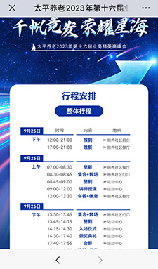 微站(zhan)展示行(xing)程安(an)排、交通安(an)排、人(ren)員安(an)排、專屬海報、現(xian)場直播(bo),溫馨(xin)提示等