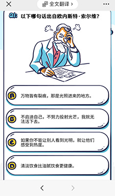 在線答題,知識競答常規作答,普及一些知識內容的小游戲。