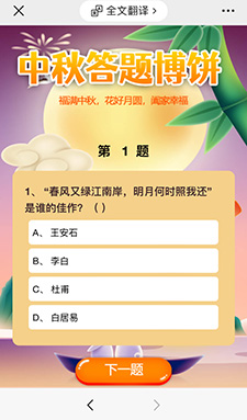 游戲創意點:可答題獲得博餅機會,直接博得獎品