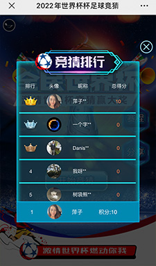 進入游戲——活動規則——我要競猜——輸入用戶名手機號——參與競猜——查看排行榜——分享贏積分