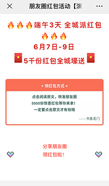 通過閱(yue)讀問下(xia)文章活動紅包的方式(shi)也成為商家的重要推(tui)廣(guang)和營銷方式(shi),小成本的方式(shi)實現朋友圈推(tui)廣(guang)的目的。