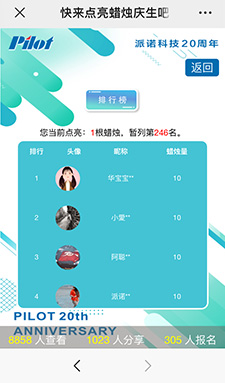 進入游戲——獲取頭像(直接獲取或者上傳照片生成)——自己有x次點蠟燭——分享好友進行助力點蠟燭——查看排行榜和活動規則