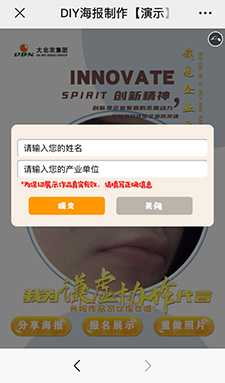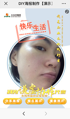 選擇模版和掛件,上傳照片,點擊生成二維碼海報,進行編輯祝福語,并提交報名信息。活動還可轉發分享好友一起玩。充分展示了活動主題和內容,樂趣而生動的一款海報diy微信營銷游戲。