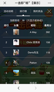 4、排行榜取活動期間玩的最高分,可以根據排行榜發獎品。