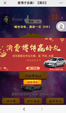 ——中(zhong)秋博餅積分兌換 是經典(dian)款微(wei)信公(gong)眾號推廣游戲,可以直接租用模(mo)版(ban),如果有(you)其它訂制需(xu)求(qiu),歡(huan)迎提交需(xu)求(qiu)給我們,進行進一步溝(gou)通和開發(fa)。