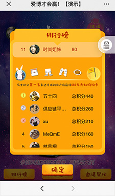 3、營銷點:分享好(hao)友一起玩,通過排(pai)行榜發放獎品;