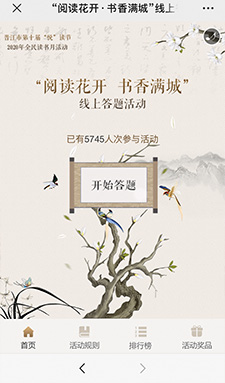 進入游戲——開始答題(ti)——測試結果——分享朋(peng)友或者朋(peng)友圈——根據(ju)排(pai)行榜發獎(jiang)品
