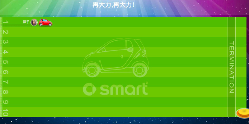 現場大屏幕(mu)經典玩法,手(shou)機搖一搖看誰跑得最快,大屏幕(mu)實時顯示(shi)結果,根據排行(xing)榜發獎品!