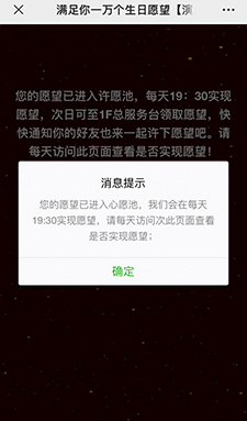 2、提交后每天19:30都有機會實現愿望,無須重復提交,請訪問活動頁面查看是否實現愿望;