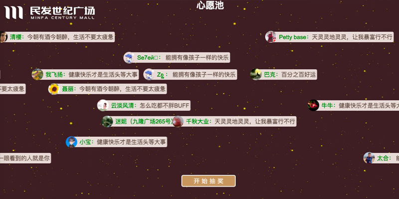 現場許愿抽獎游戲(xi),提交愿望進入許愿池,等待開獎!