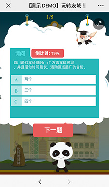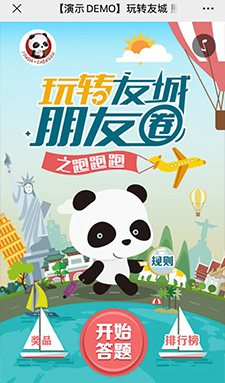 熊貓酷跑答題,邊跑邊答題,界面圖片美觀十足,在答題活動中巧妙植入廣告信息。