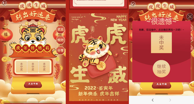 虎年瘋狂購物節(jie),電商、零售、商超等行(xing)業(ye)將獲得大大成單量。結(jie)合節(jie)日氣氛,微信互動(dong)游戲更多注重到吸粉、互動(dong)、分(fen)享、轉發等功能(neng),不(bu)僅提升(sheng)粉絲(si)的(de)互動(dong)性,還能(neng)獲得大量的(de)粉絲(si)轉化(hua)。