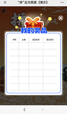 進入游戲——開始游戲——選擇拼圖成功——抽獎——我的獎品