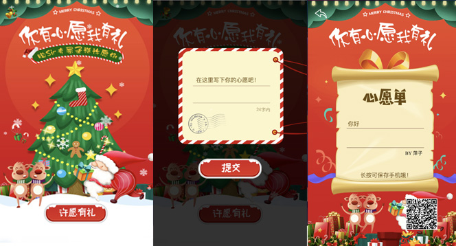 圣誕寫下愿望,分享好友可獲得抽獎機會。活動推出,實現幾千幾萬粉絲參與,營銷效果非常顯著。