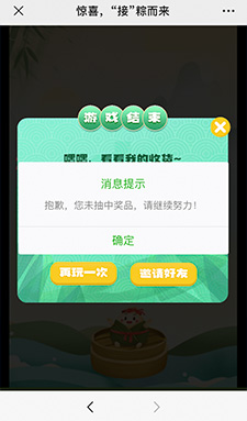 ——接粽而來游戲是經典款微信公眾號推廣游戲,可以直接租用模版,如果有其它訂制需求,歡迎提交需求給我們,進行進一步溝通和開發。