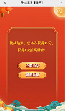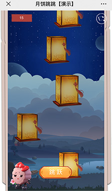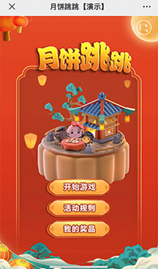 迎(ying)合中秋節的節日推(tui)廣(guang),微(wei)信朋友圈大多玩(wan)與月餅有關(guan)的微(wei)信營(ying)銷游戲。這是(shi)一(yi)款可以(yi)植入廣(guang)告的跳(tiao)一(yi)跳(tiao)活動,達到分數(shu)可抽取實(shi)物或紅(hong)包(bao)。活動推(tui)出后(hou),實(shi)現幾千幾萬粉絲參與,營(ying)銷效果非常(chang)顯著。