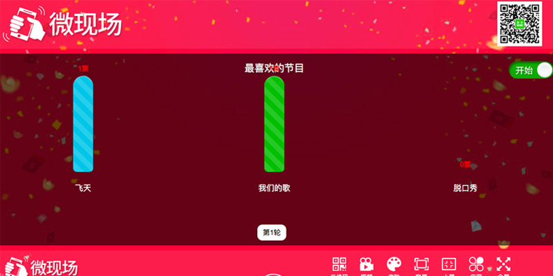 現場大屏幕投票活動,是投票通道根據現場情況開啟,現場所有人通過投票入口進入投票頁面,自主投票,大屏幕實時顯示投票數據,在規定的時間內完成投票,最后關閉投票通道,結束投票結果公布頒獎。