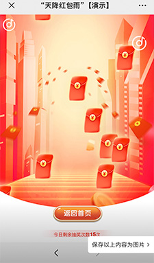 3、營銷點:玩紅包雨活動,直接領取紅包,活動火爆朋友圈;