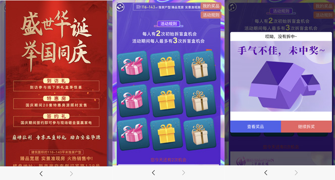 國慶節互動游戲通過參與互動提高參與者的興趣,積分兌換、排行榜高低、積分抽獎等形式促進銷售轉化,實現了微信朋友圈裂變營銷目的。