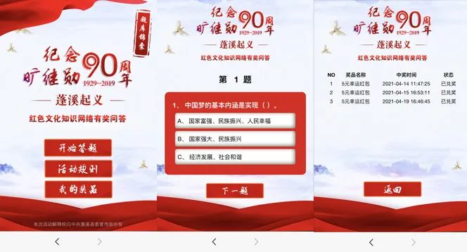 2、答對x題,可以參與大轉盤抽獎,獲得實物或紅包